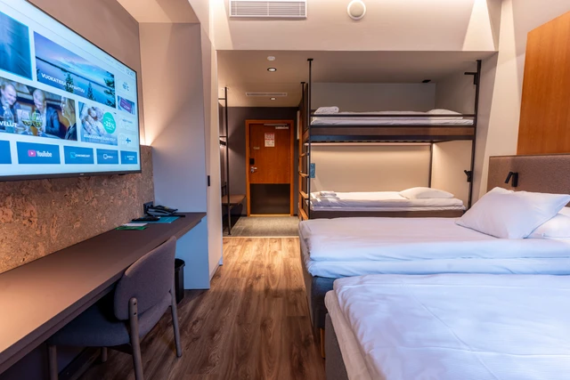 Huonetyyppi (1 hh, 2 hh, perhehuone/lisävuode) määräytyy perheen koon mukaan. Varaus tehdään henkilöittäin, ja huonejako suunnitellaan joustavasti ilmoitettujen majoittujamäärien perusteella.
